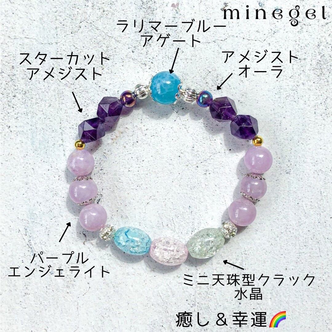 【受注制作】⭐️癒しと幸運⭐️パープルエンジェライト&♡アメジスト 天珠型クラック水晶 ラリマーブルーアゲートのデザインブレスレット✨ |minegel-オーダーメイドできるおしゃれパワーストーンブレスレット