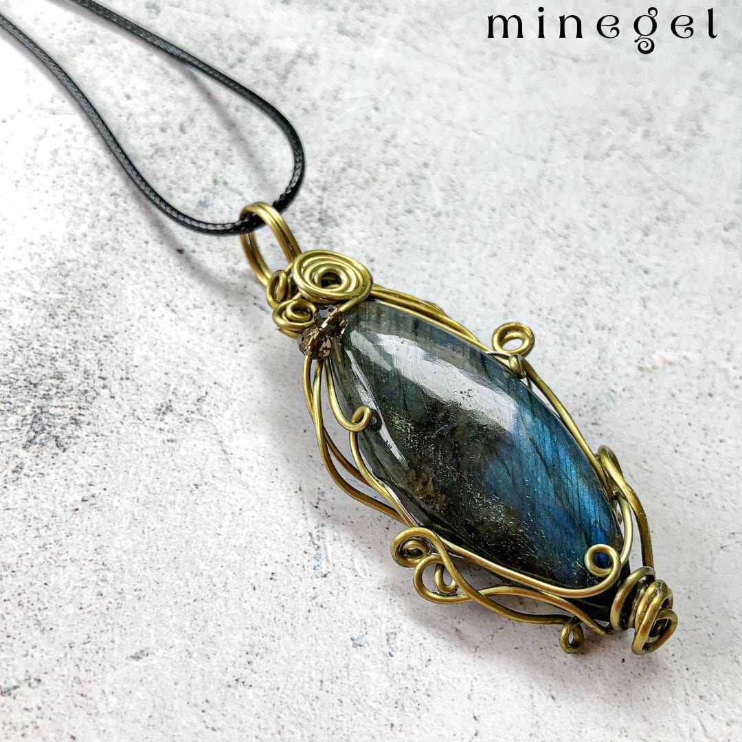 1点もの⭐️神秘的な美しさ⭐️ブルーラブラドライト ペンダント バッグチャーム ワイヤー✨|minegel お守り
