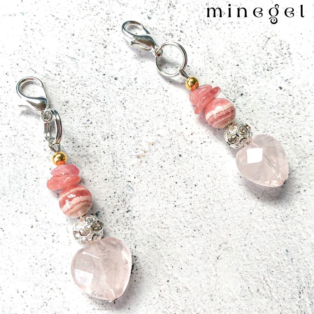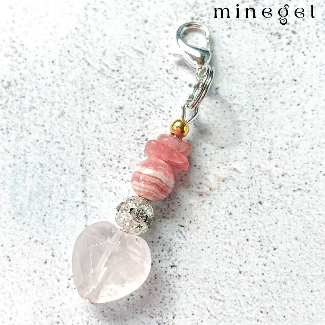 高品質ハート型ローズクォーツ インカローズ 天然石チャーム✨️|minegel-オーダーメイドできるおしゃれパワーストーンブレスレット