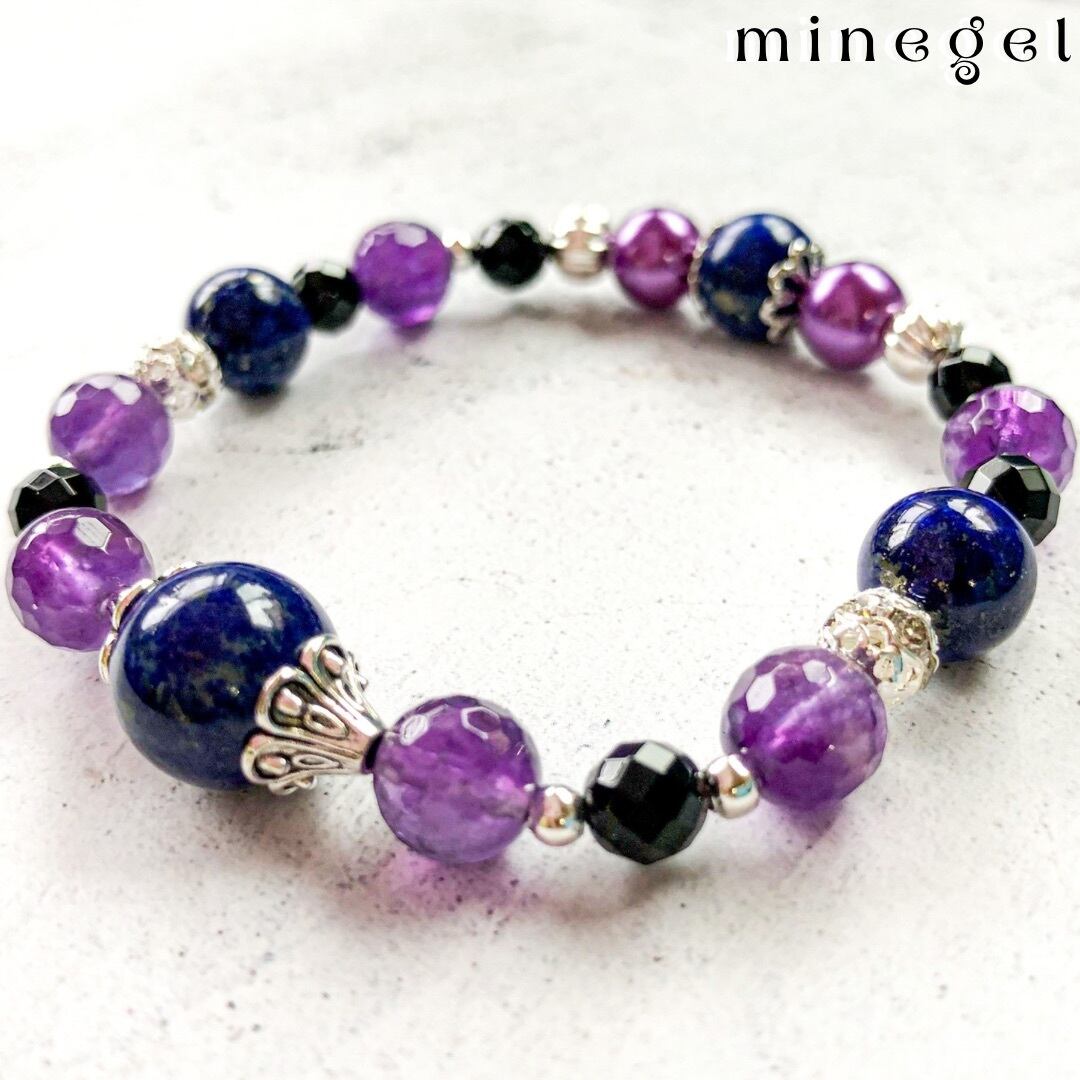 再販⭐️幸運と魔除け⭐️12mm高発色 ラピスラズリ&アメジスト&オニキス ブレスレット✨ |minegel-オーダーメイドできるおしゃれパワーストーンブレスレット