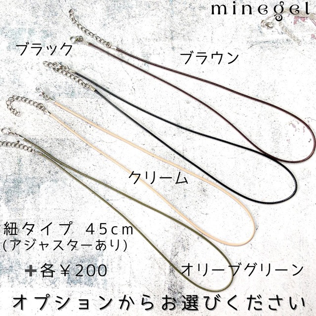 紐タイプ、シルバーチェーンがお選びできます。