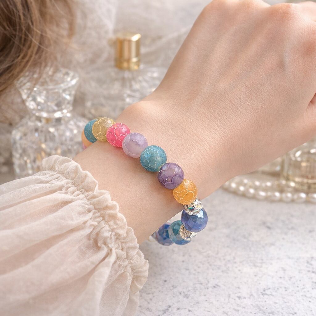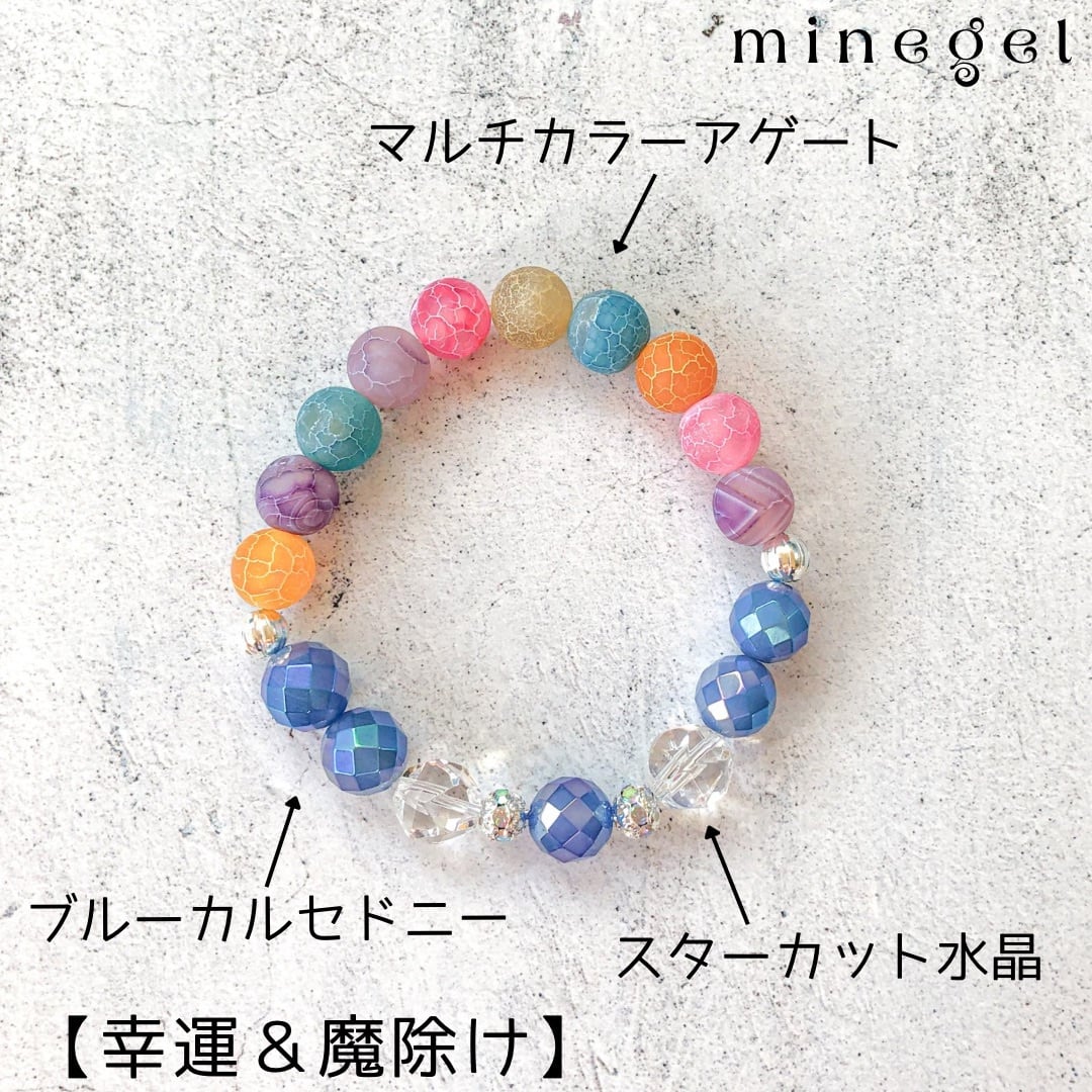⭐️幸運⭐️心晴れ晴れ☀️ブルーカルセドニーと可愛いカラーアゲートのカラフルブレスレット✨ |minegel-オーダーメイドできるおしゃれパワーストーンブレスレット