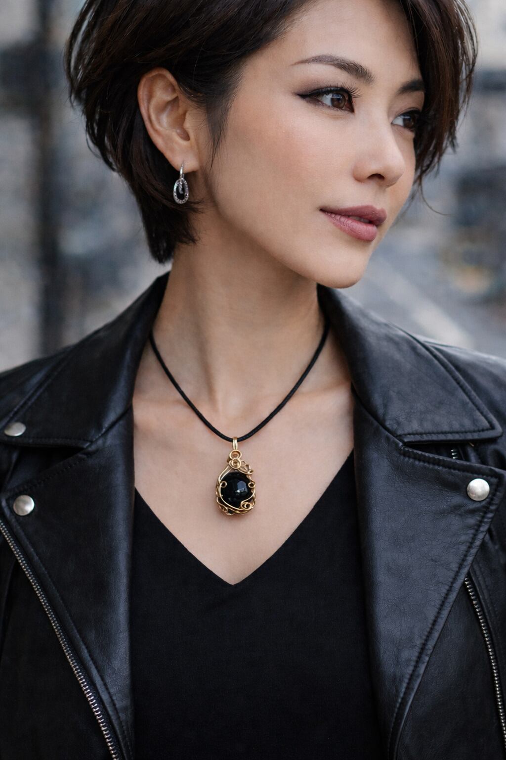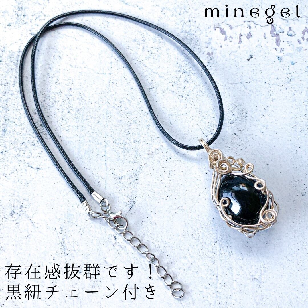 黒紐チェーン付き。漆黒でかっこ良いです。