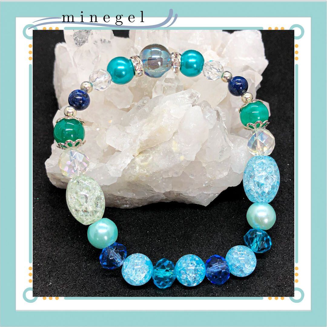 ブルーアクアオーラ✨ コスモオーラ ラピスラズリ グリーンドラゴンアゲート ミニ天珠型レインボー水晶 ブレスレット✨ |minegel-オーダーメイドできるおしゃれパワーストーンブレスレット