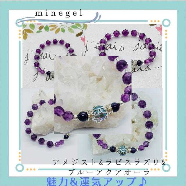 アメジスト ラピスラズリ ブルーアクアオーラ ブレスレット✨ |minegel-オーダーメイドできるおしゃれパワーストーンブレスレット