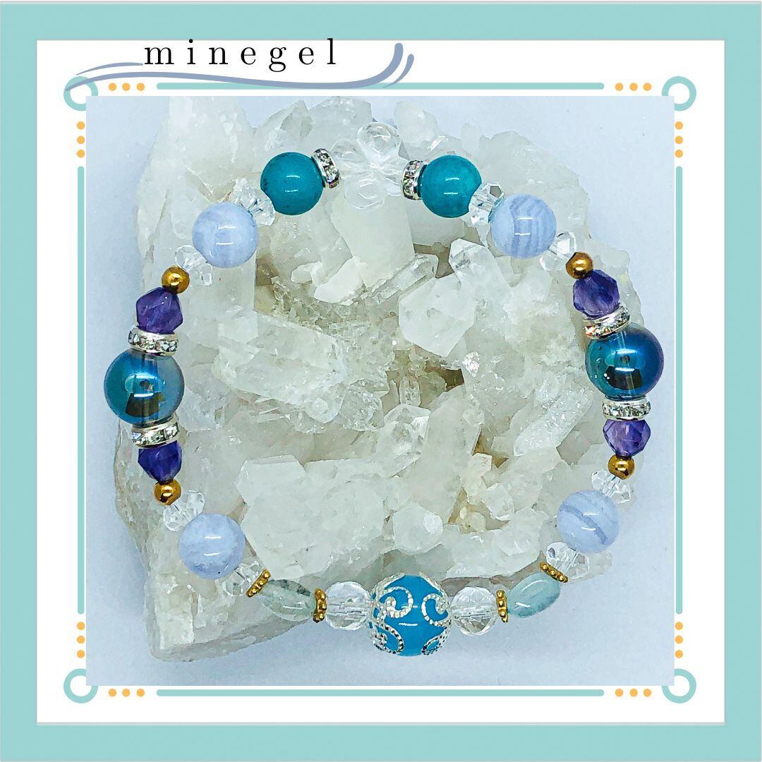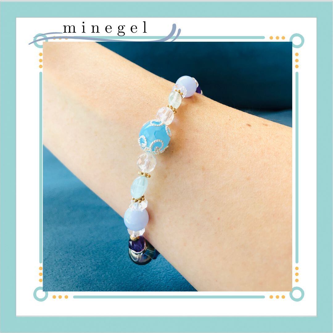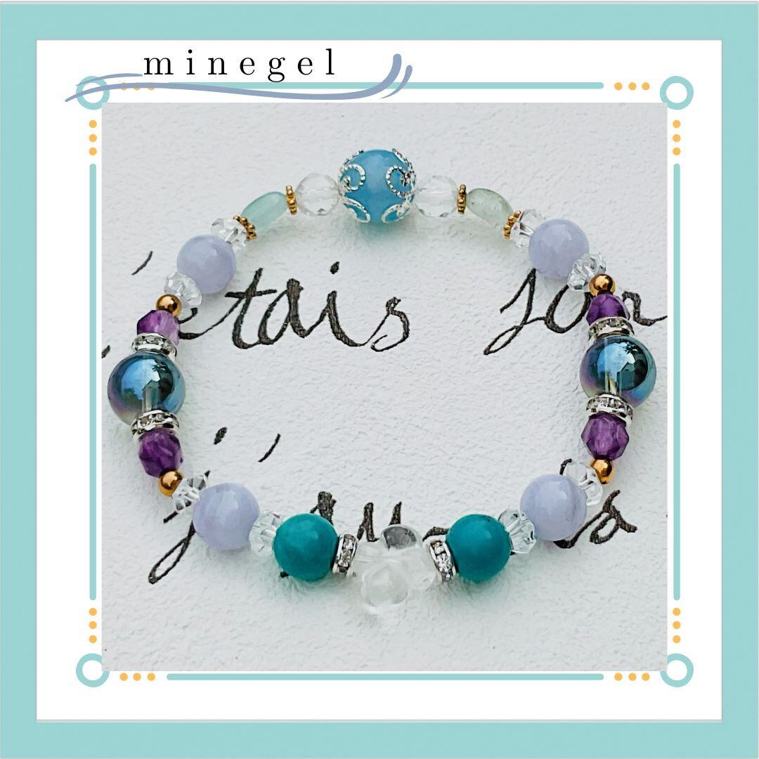 ターコイズ&アメジスト&四つ葉水晶&ブルーレースアゲート&ラリマーブルーアゲート&フローライトブレスレット✨ |minegel-オーダーメイドできるおしゃれパワーストーンブレスレット♪