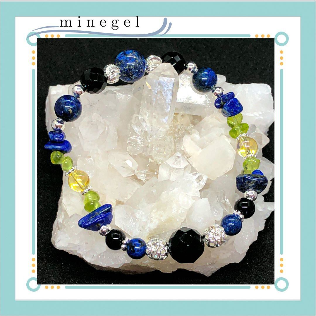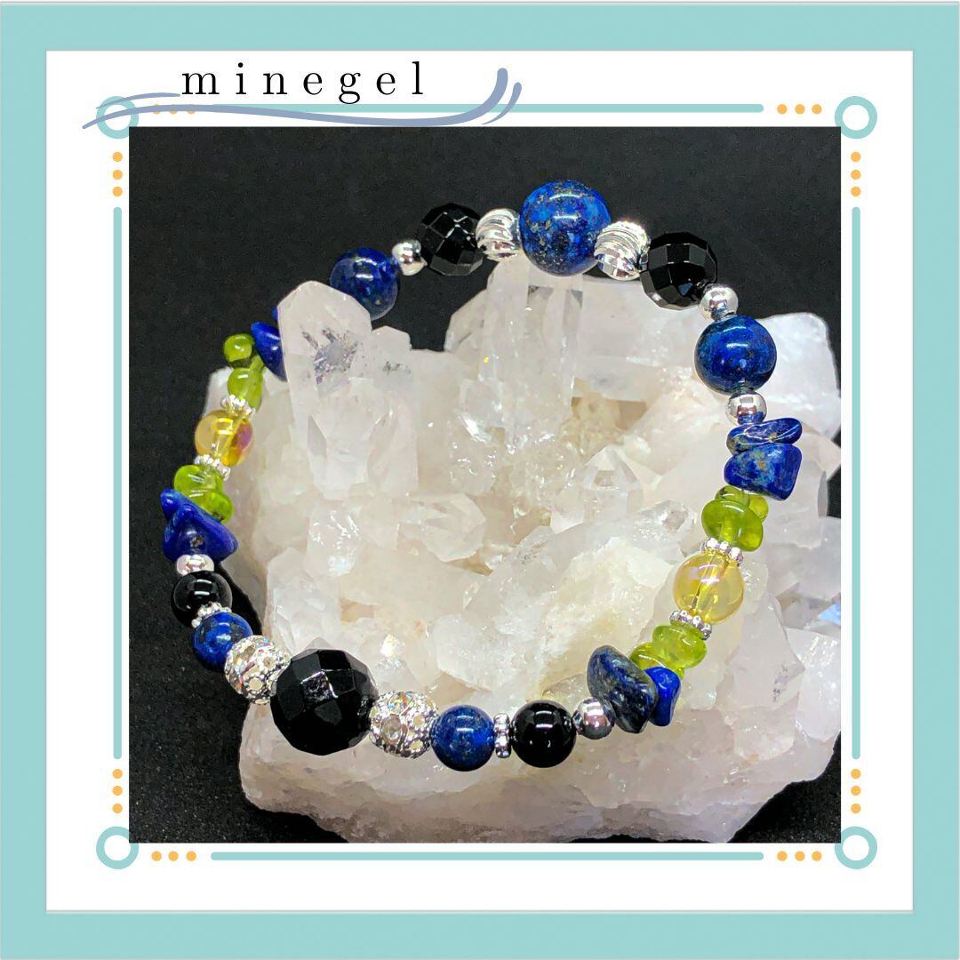高品質ラピスラズリ&オニキス&ペリドット&ゴールデンオーラブレスレット✨ |minegel-オーダーメイドできるおしゃれパワーストーンブレスレット