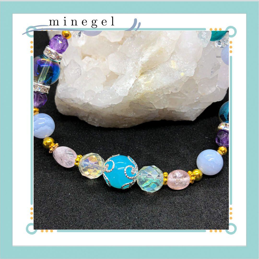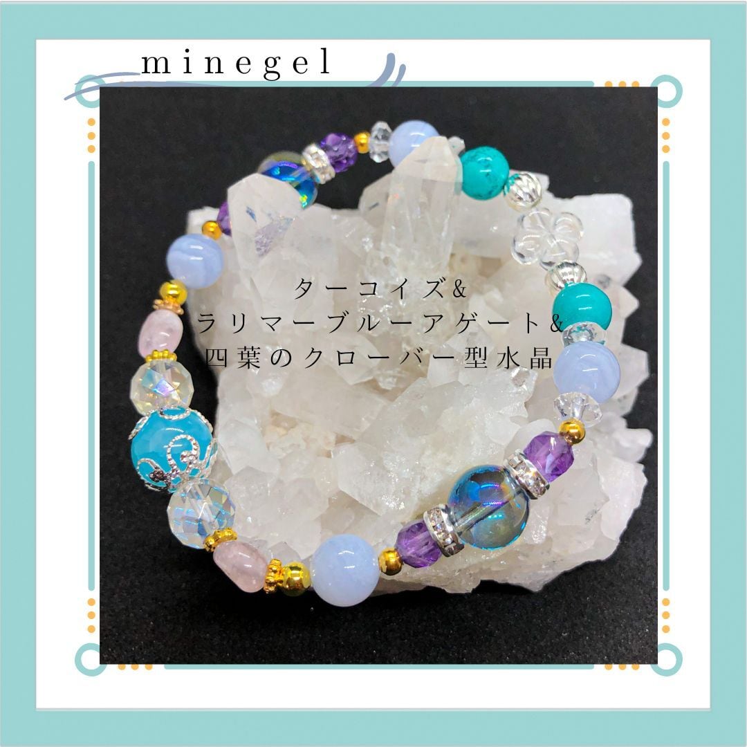 ターコイズ&アメジスト&四つ葉水晶&ブルーレース&ラリマーブルーアゲートブレスレット✨|minegel-オーダーメイドできるおしゃれパワーストーンブレスレット