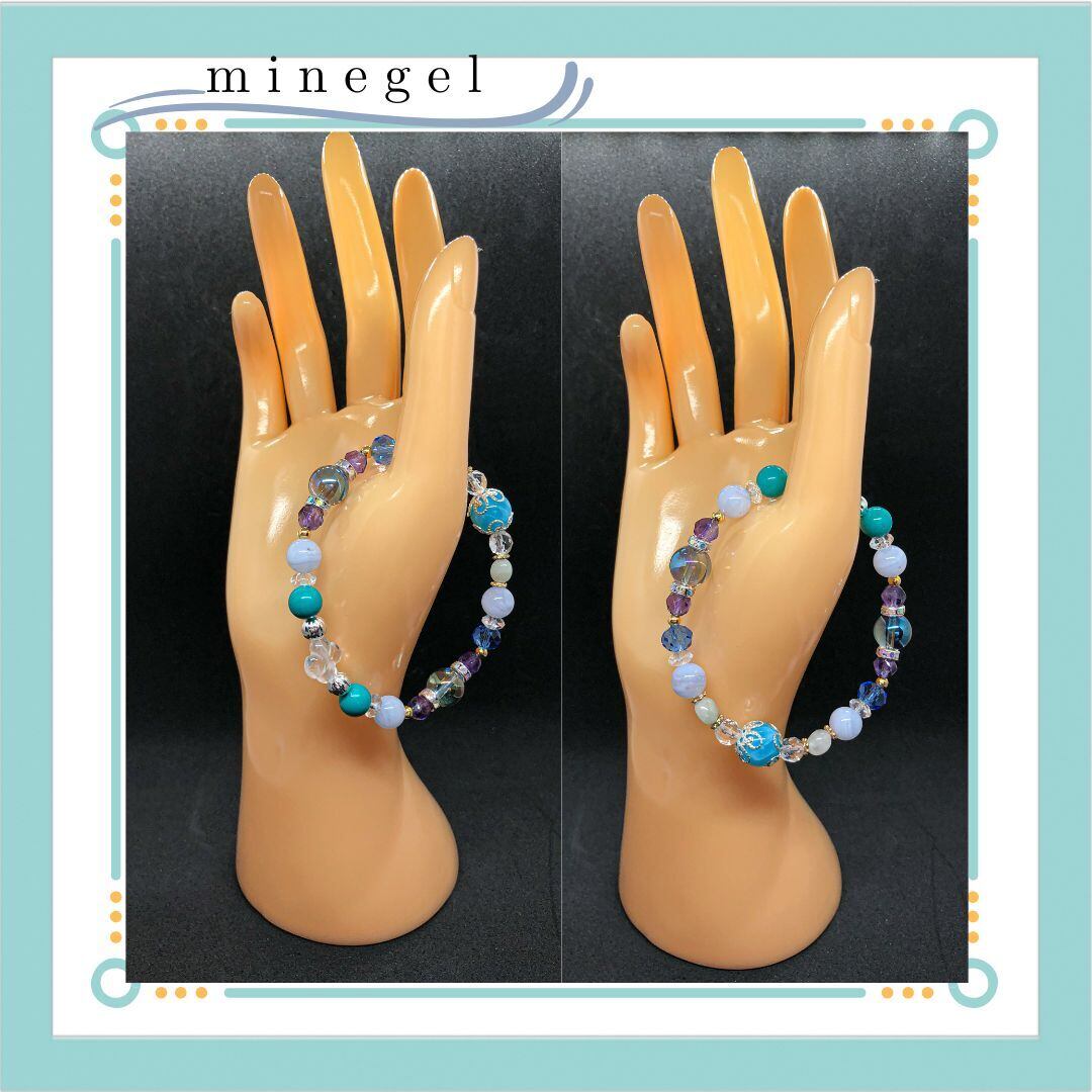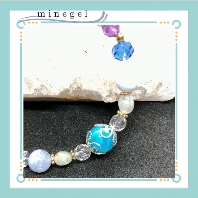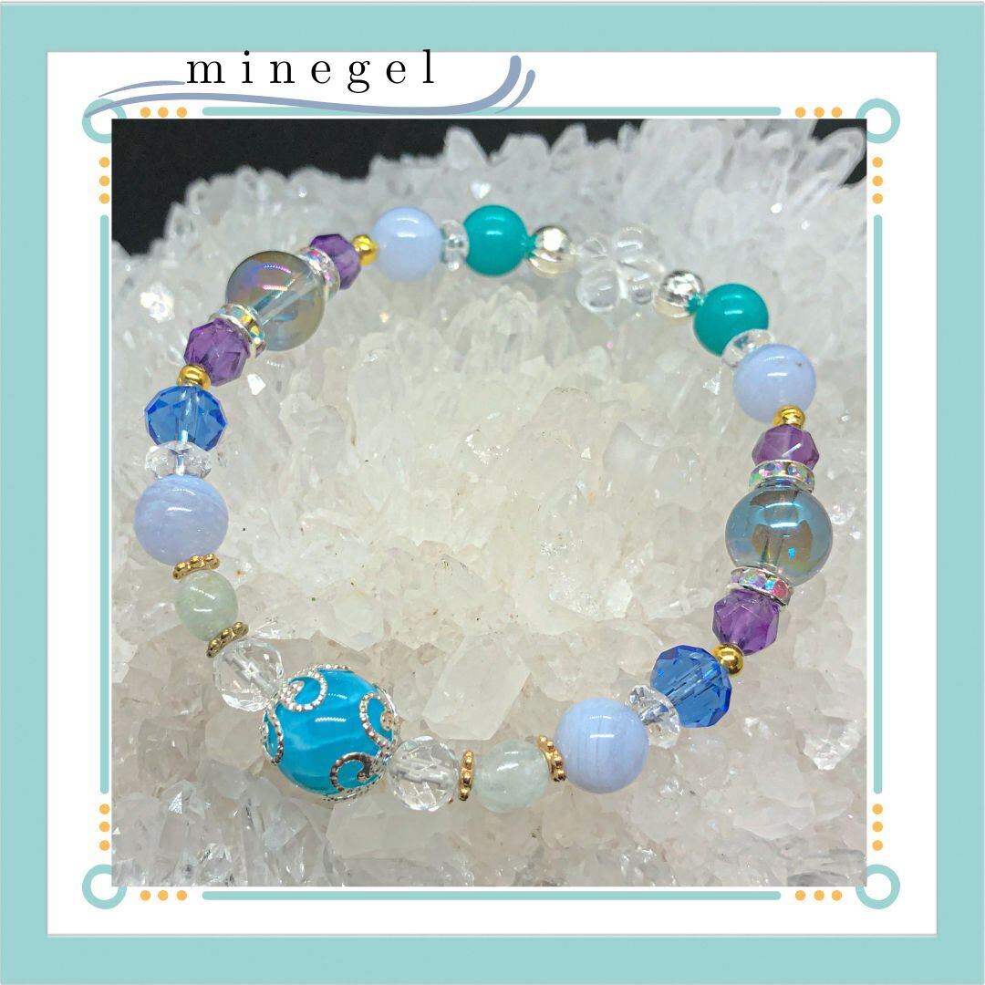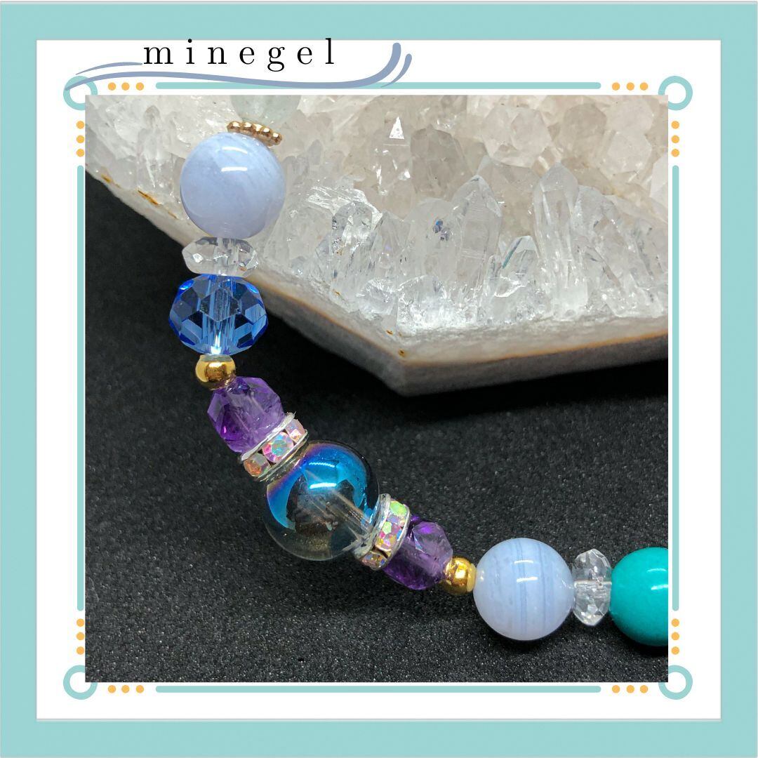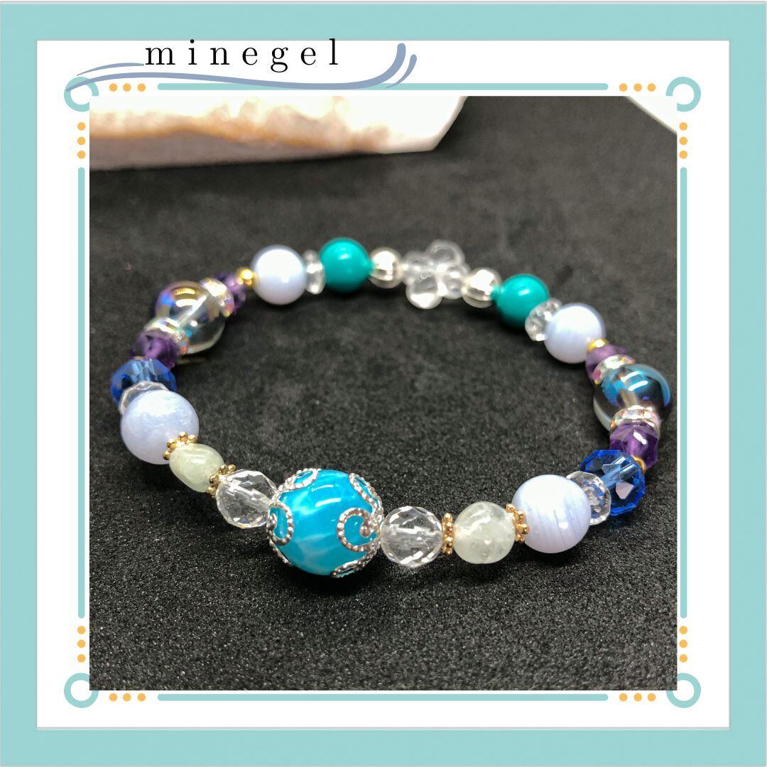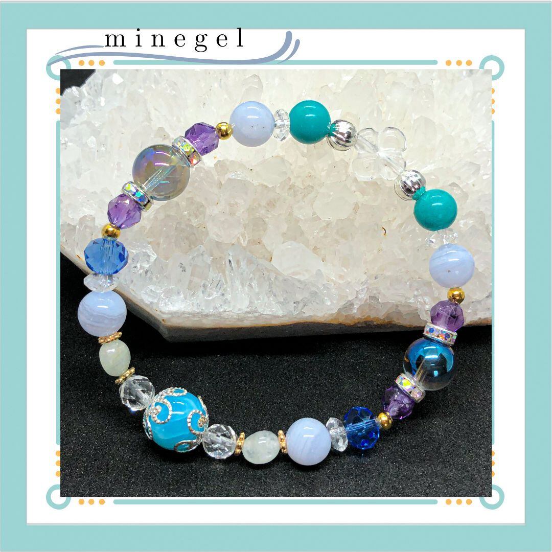 M様オーダー品♪ ターコイズ&アメジスト&四つ葉水晶&ブルーレース&ラリマーブルーアゲートブレスレット✨|minegel-オーダーメイドできるおしゃれパワーストーンブレスレット