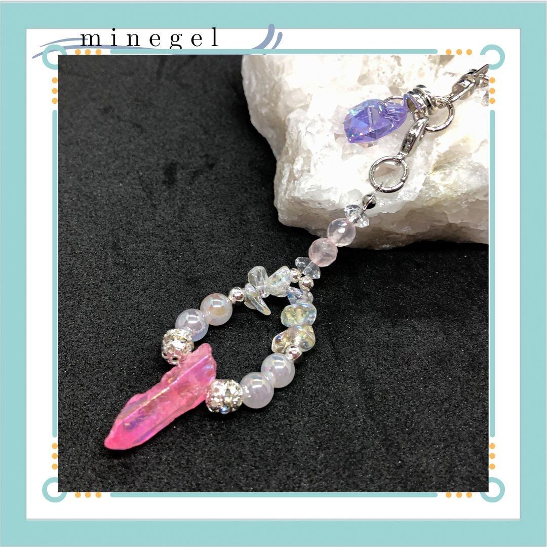 ピンクオーラ水晶ポイントキーホルダー✨ ✨|minegel-オーダーメイドできるおしゃれパワーストーンブレスレット