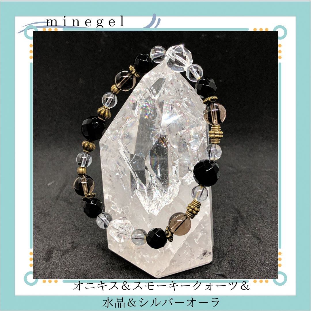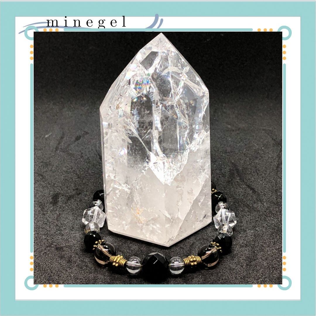 ツヤの美しいブラックオニキス64面カットと20面キラキラカットの水晶をメインに置き、とAAAスモーキークォーツ&神秘的なシルバーオーラクォーツをカッコ良くおしゃれに飾りました(* ᴗ͈ˬᴗ͈)”