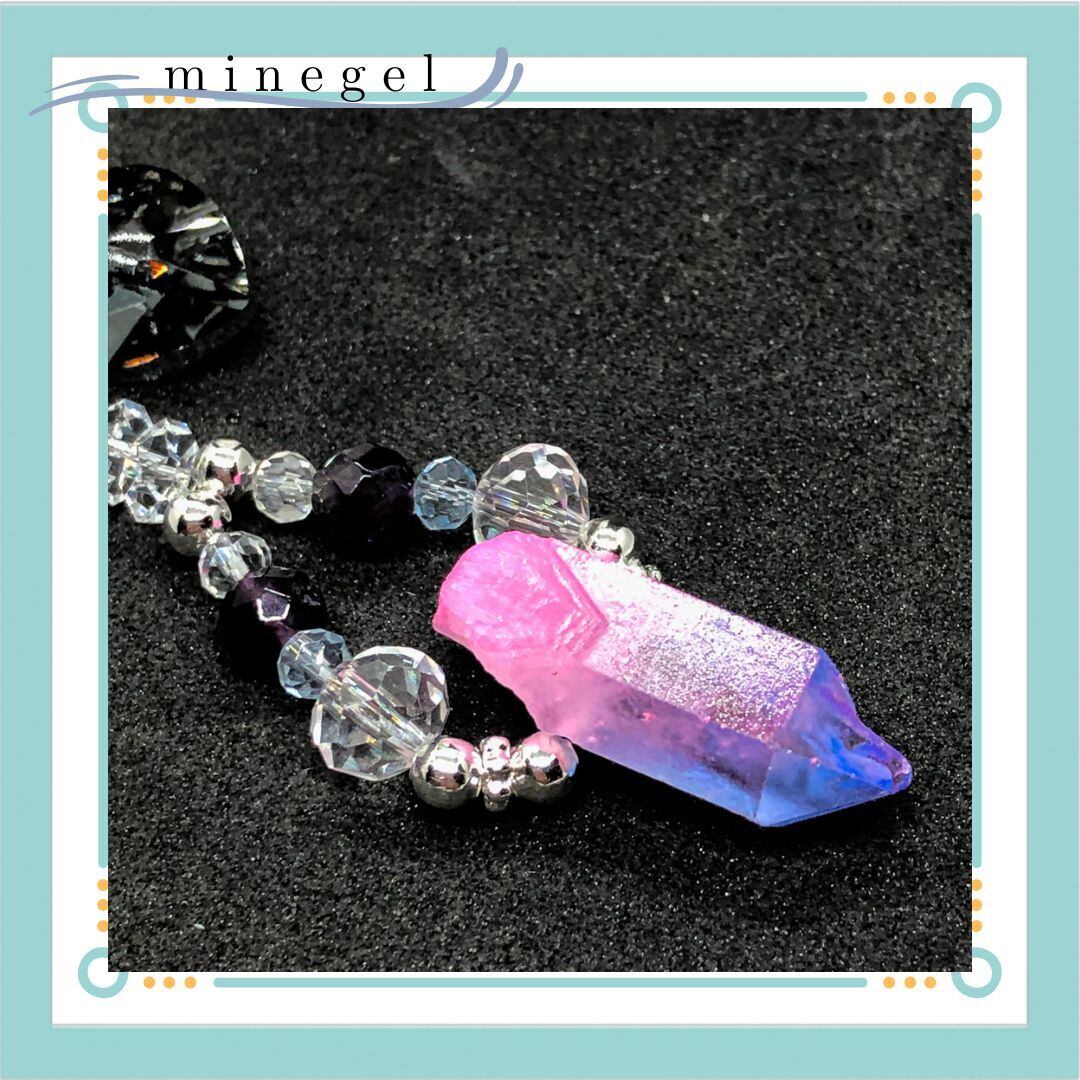 ブルー&ピンク天然水晶ポイント キーホルダー ✨|minegel-オーダーメイドできるおしゃれパワーストーンブレスレット