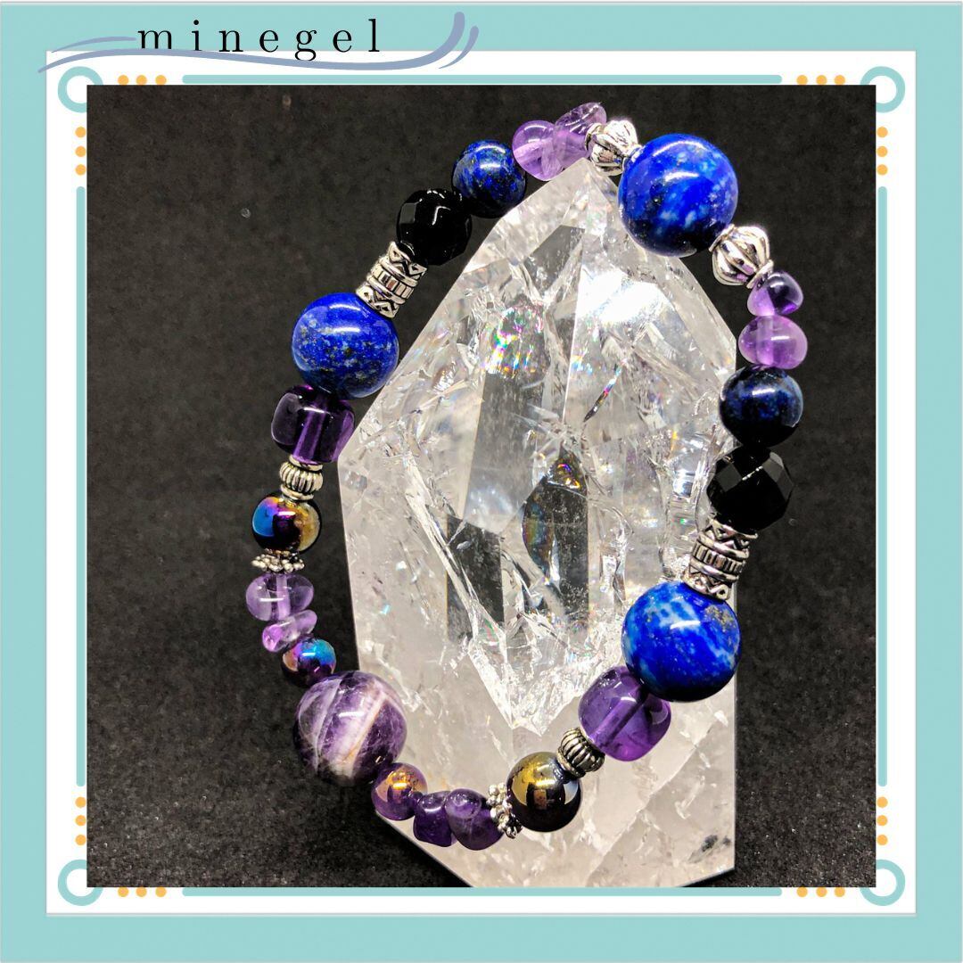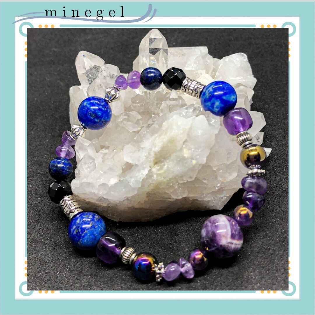 大粒ラピスラズリ&シェブロンアメジスト&オニキス ブレスレット✨ |minegel-オーダーメイドできるおしゃれパワーストーンブレスレット
