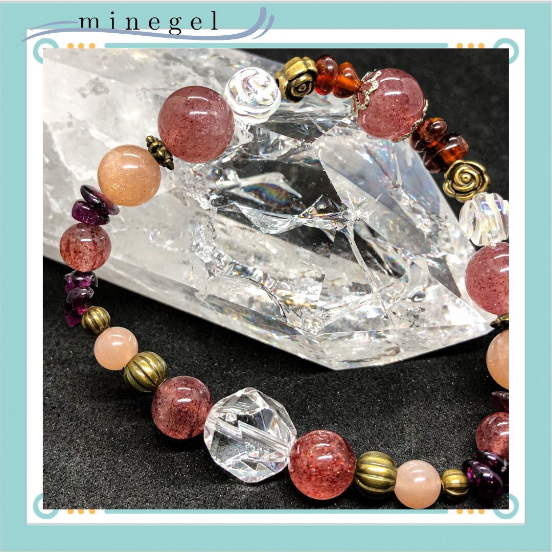 アクセントにローライドガーネットとアンバー(琥珀)のさざれ石を入れています♪