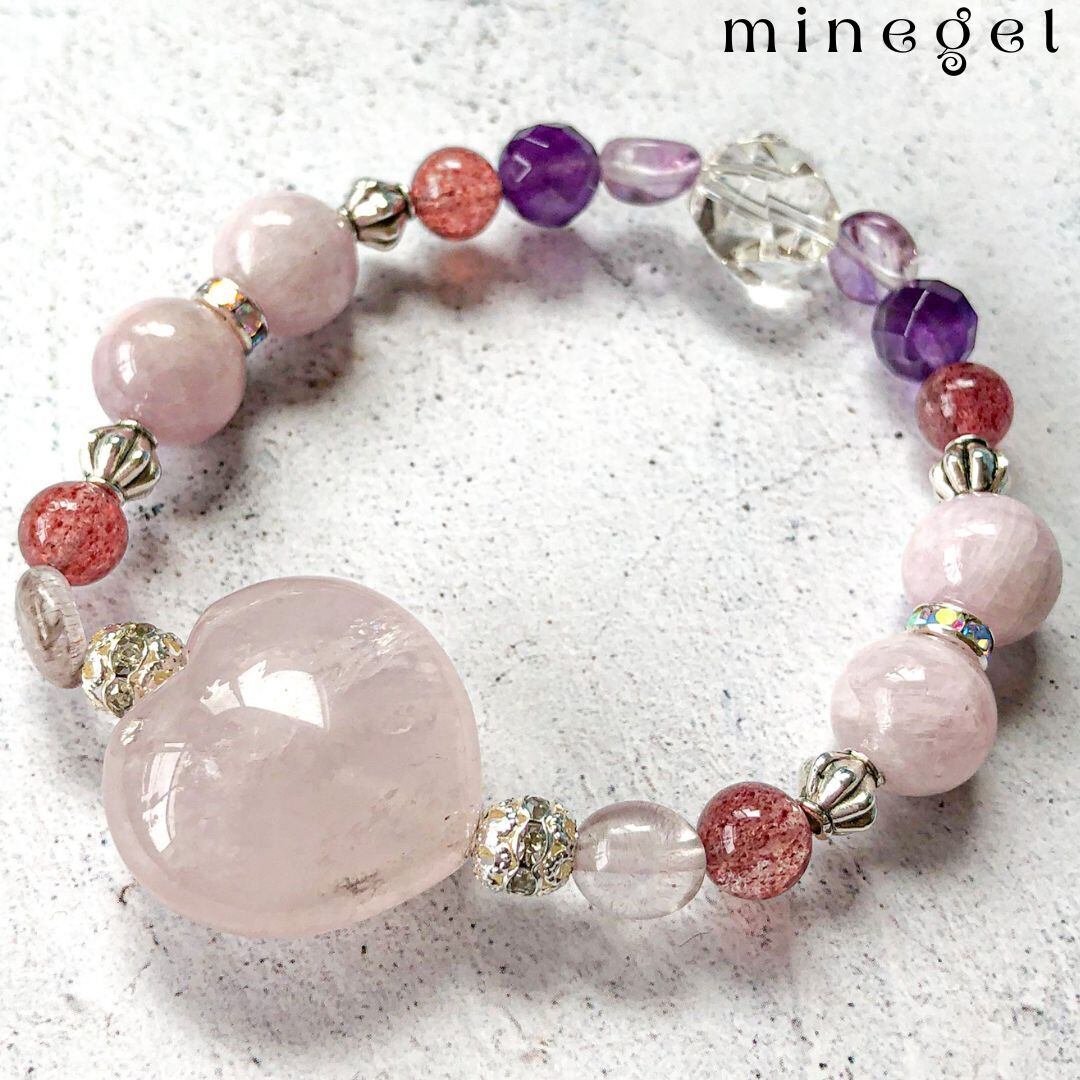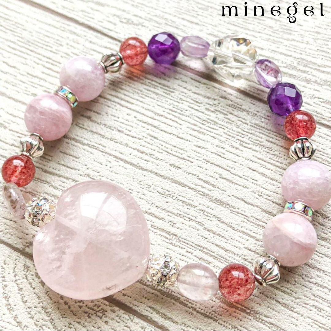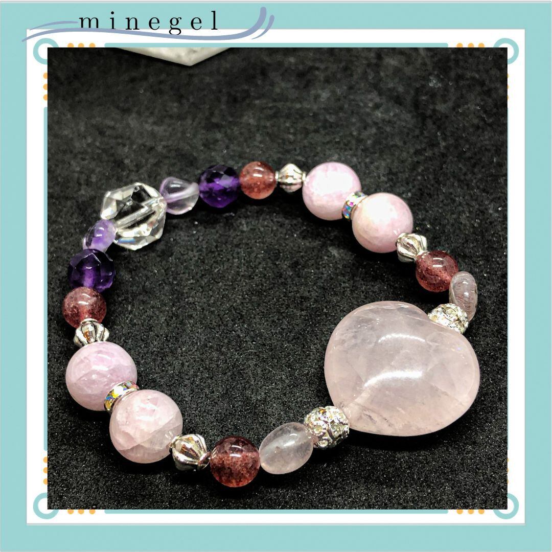 [受注制作] Sweet 大粒 ハート ローズクォーツ クンツァイト ピンクエピドート ブレスレット✨ |minegel-オーダーメイドできるおしゃれパワーストーンブレスレット
