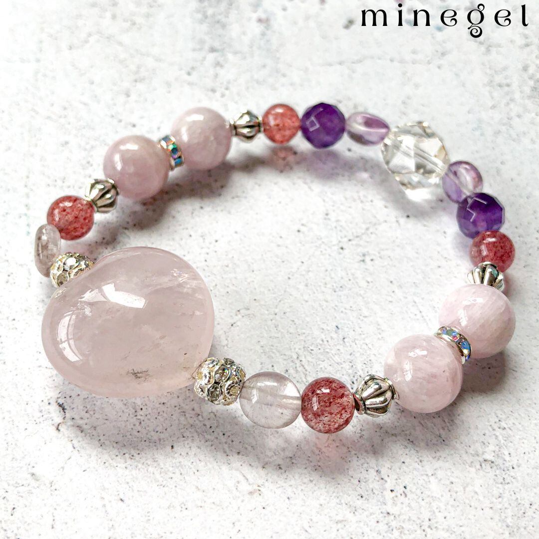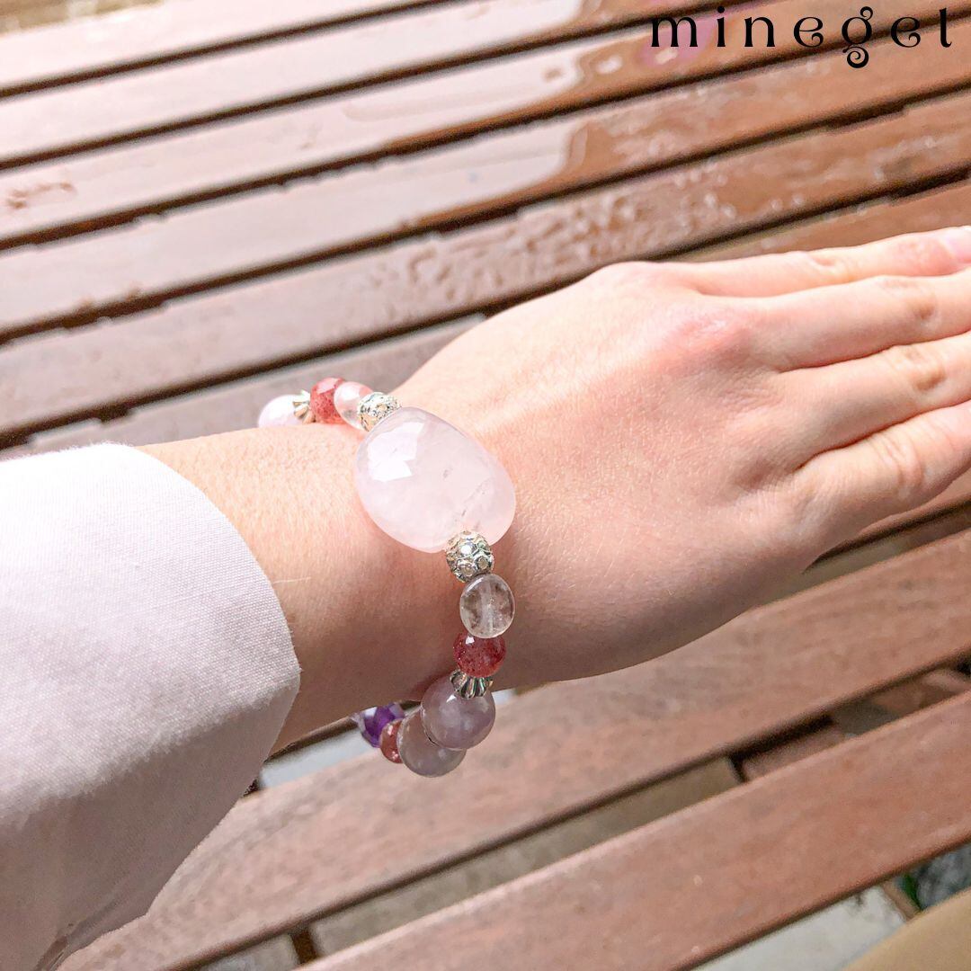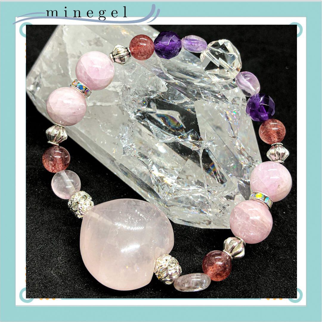 [受注制作] Sweet 大粒 ハート ローズクォーツ クンツァイト ピンクエピドート ブレスレット✨ |minegel-オーダーメイドできるおしゃれパワーストーンブレスレット