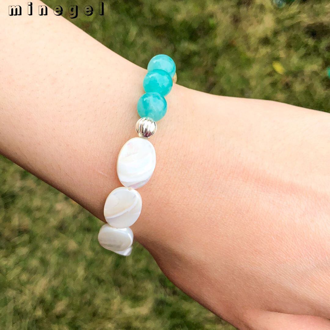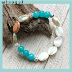 再販 [受注制作] 癒しのマリンブルー♪ モネの絵画のようなインプレッションストーン アマゾナイト マザーオブパール デザイン ブレスレット✨ |minegel-オーダーメイドできるおしゃれパワーストーンブレスレット