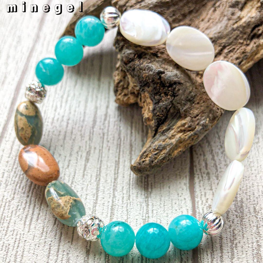 ![再販 [受注制作] 癒しのマリンブルー♪ モネの絵画のようなインプレッションストーン アマゾナイト マザーオブパール デザイン ブレスレット✨ |minegel-オーダーメイドできるおしゃれパワーストーンブレスレット](https://baseec-img-mng.akamaized.net/images/item/origin/f04a600faad863287167122b20a7bb7a.jpg?imformat=generic&q=90&im=Resize,width=640,type=normal)