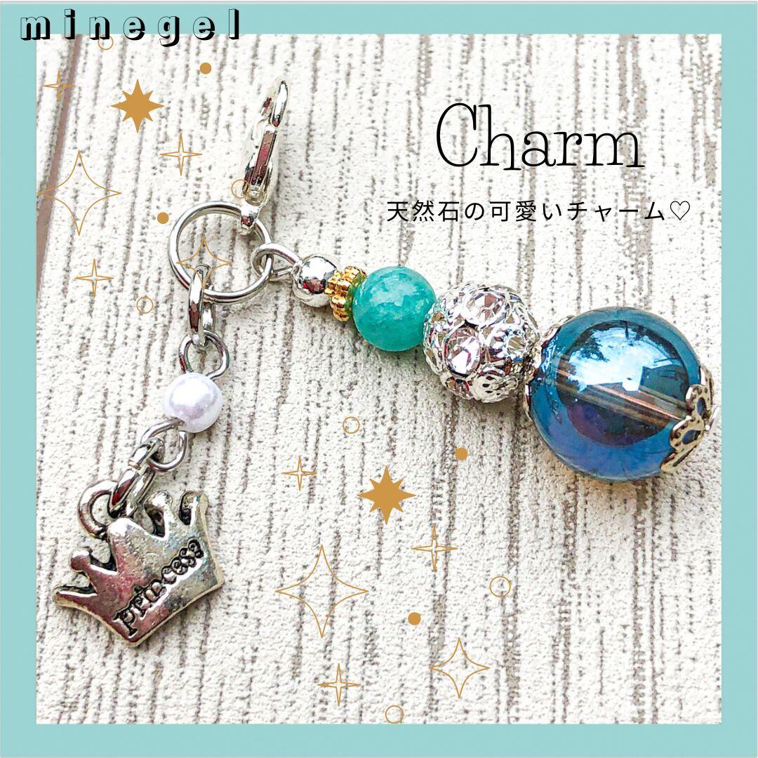 クラウン☆ ブルーアクアオーラ アマゾナイト チャーム✨️ ✨|minegel-オーダーメイドできるおしゃれパワーストーンブレスレット