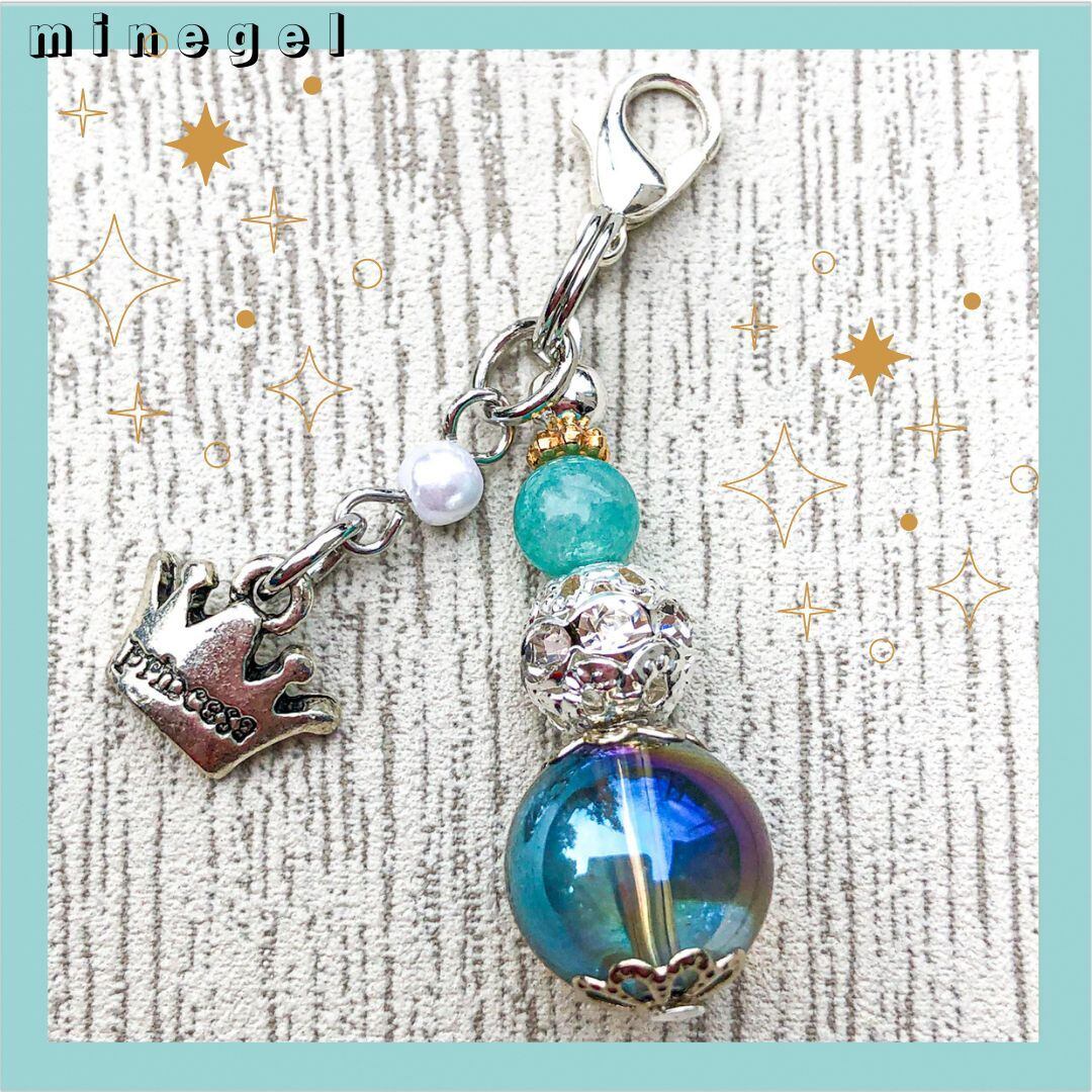 神秘的な12mmブルーアクアオーラ水晶と可愛いブルーアマゾナイトにクラウンのモチーフをつなげたチャームです✨