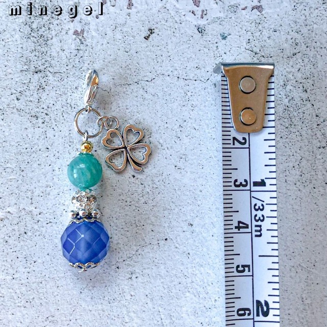 12mm多面カットのブルーアゲートと可愛いブルーアマゾナイトにモチーフをつなげたチャームです✨