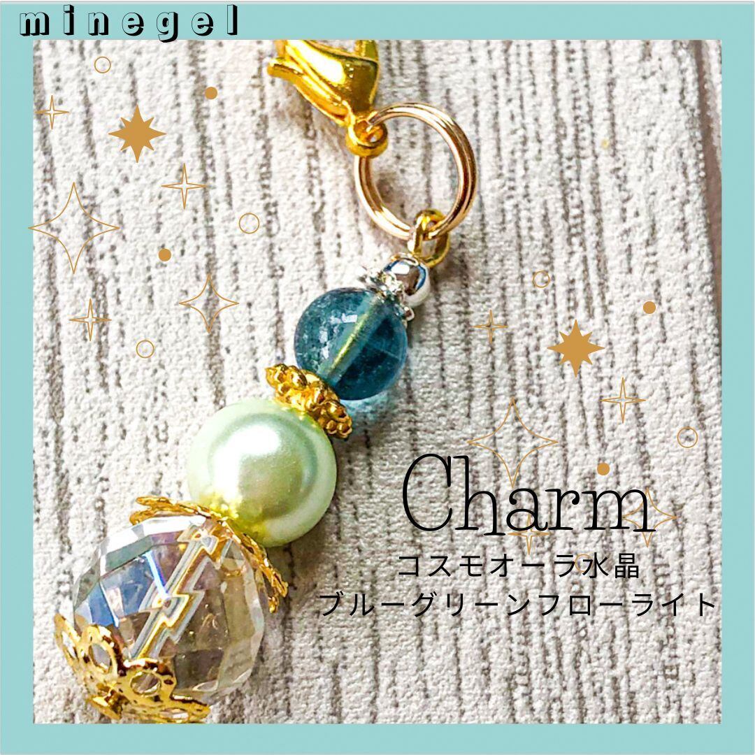 キラキラした多面カットコスモオーラ水晶とAAAブルーグリーンフローライト&可愛いガラスパールをつなげたチャームです✨