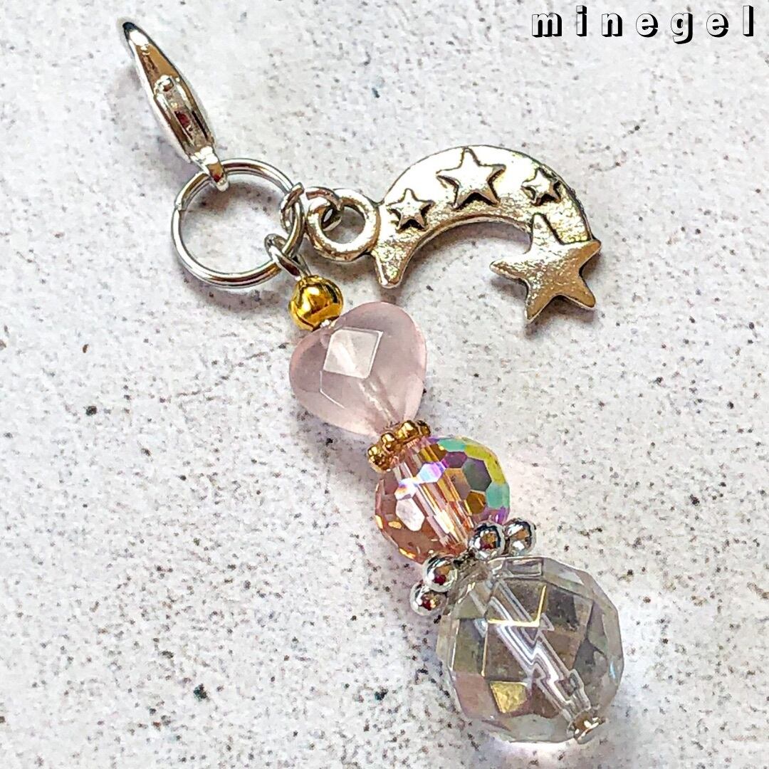 お月様&お星さま⭐️ハート型ローズクォーツ コスモオーラ水晶 チャーム✨️ ✨|minegel-オーダーメイドできるおしゃれパワーストーンブレスレット