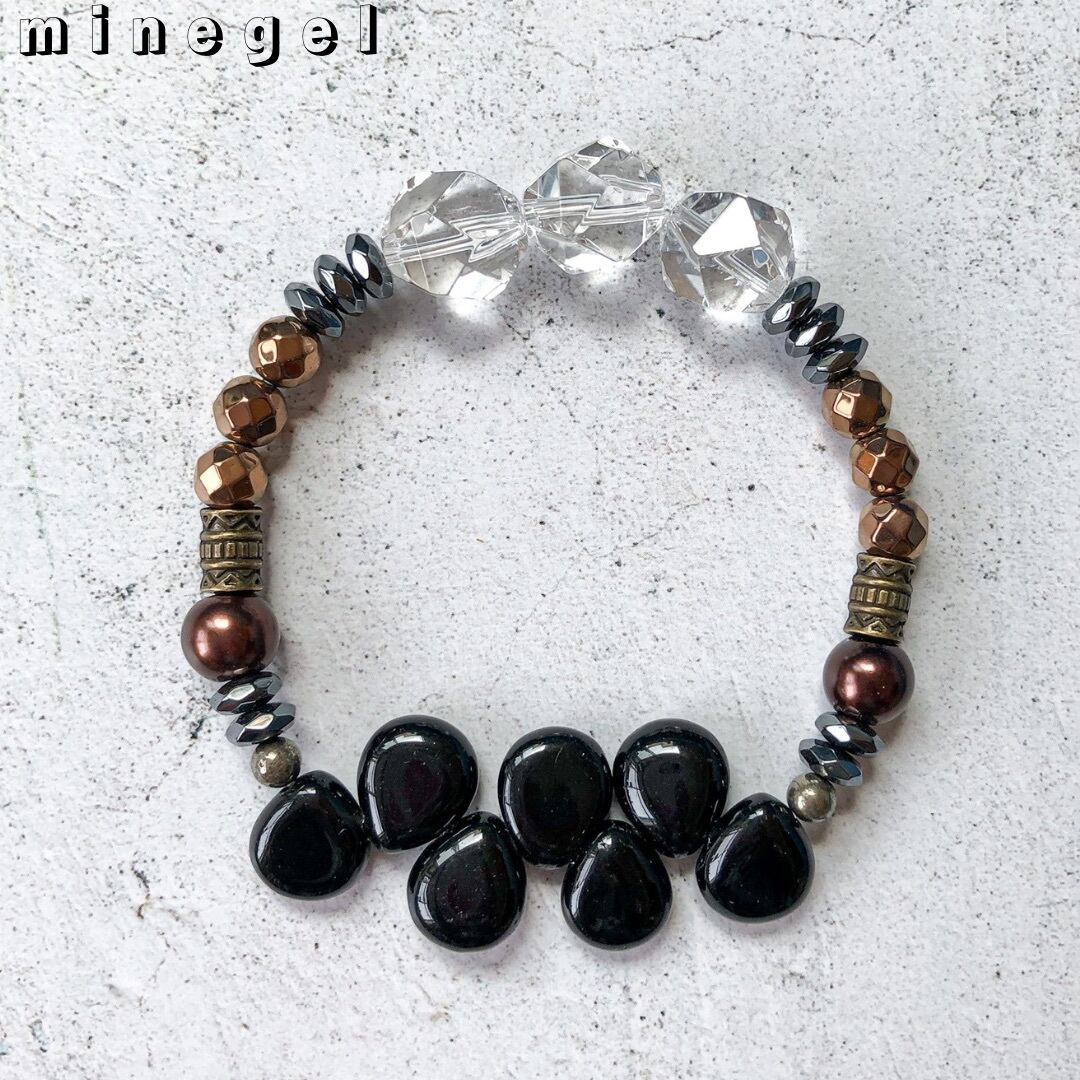 【受注制作】⭐️強力な魔除け⭐️7珠のオニキス ヘマタイト 大粒水晶 ブレスレット♪ ✨ |minegel-オーダーメイドできるおしゃれパワーストーンブレスレット