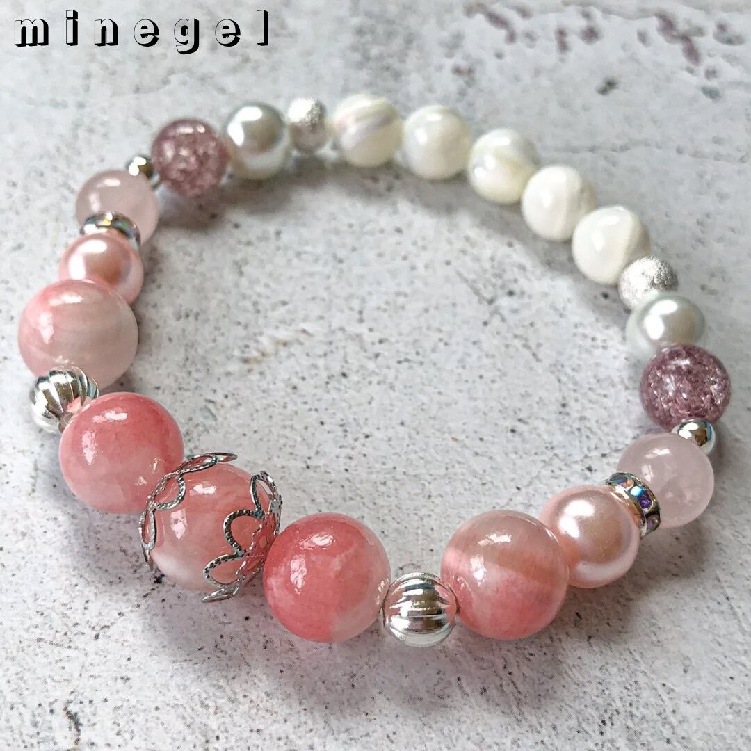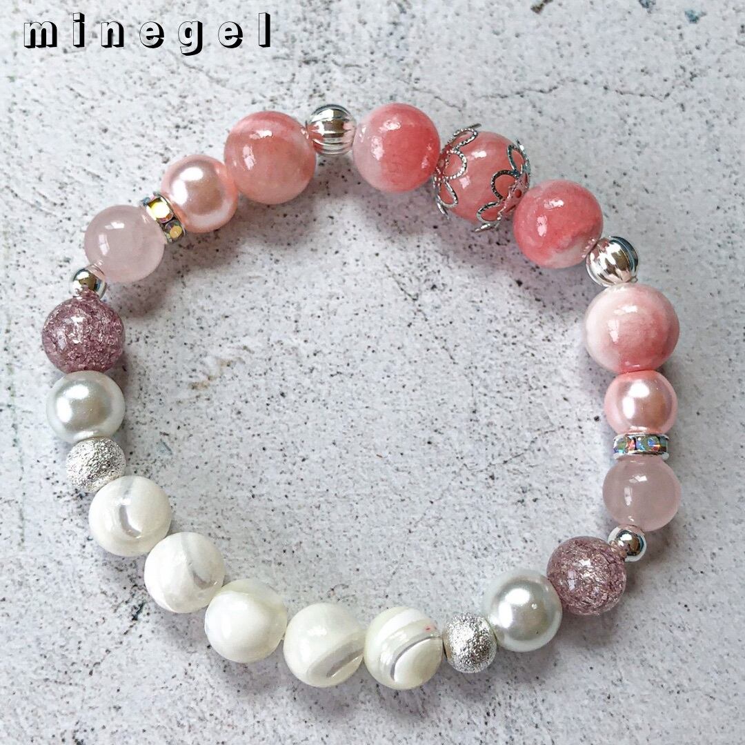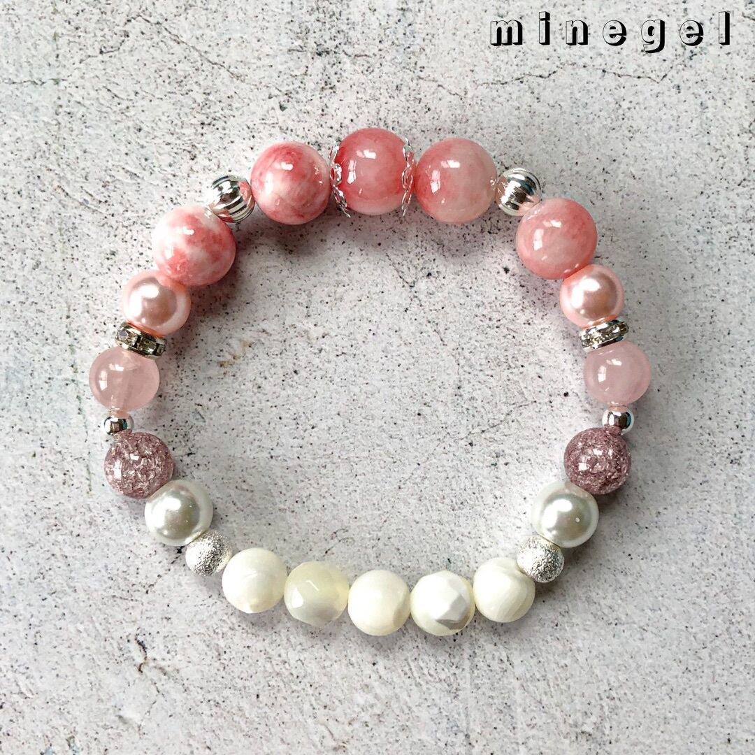 再販x3【受注制作】⭐️人間関係⭐️ピンクペルシャ翡翠 マザーオブパール ローズクォーツ ブレスレット✨ |minegel-オーダーメイドできるおしゃれパワーストーンブレスレット