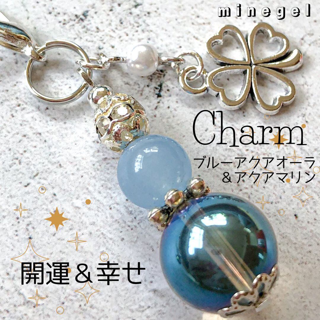 再販⭐️開運&幸せ⭐️ブルーアクアオーラ&アクアマリン チャーム① ✨|minegel-オーダーメイドできるおしゃれパワーストーンブレスレット
