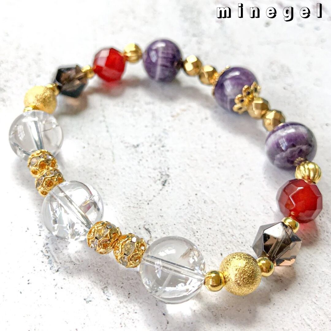 再販【受注制作】⭐️美麗⭐️12mmアイリスクォーツ 深紅カーネリアン シェブロンアメジスト パワーストーンブレスレット✨ |minegel-オーダーメイドできるおしゃれパワーストーンブレスレット