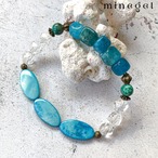 ラムネのようなブルーアパタイトにキラキラなカット水晶と目を惹くシェル、地球のようなカラーの希少シリカ入りクリソコラの組み合わせがスタイリッシュなブレスレット♪