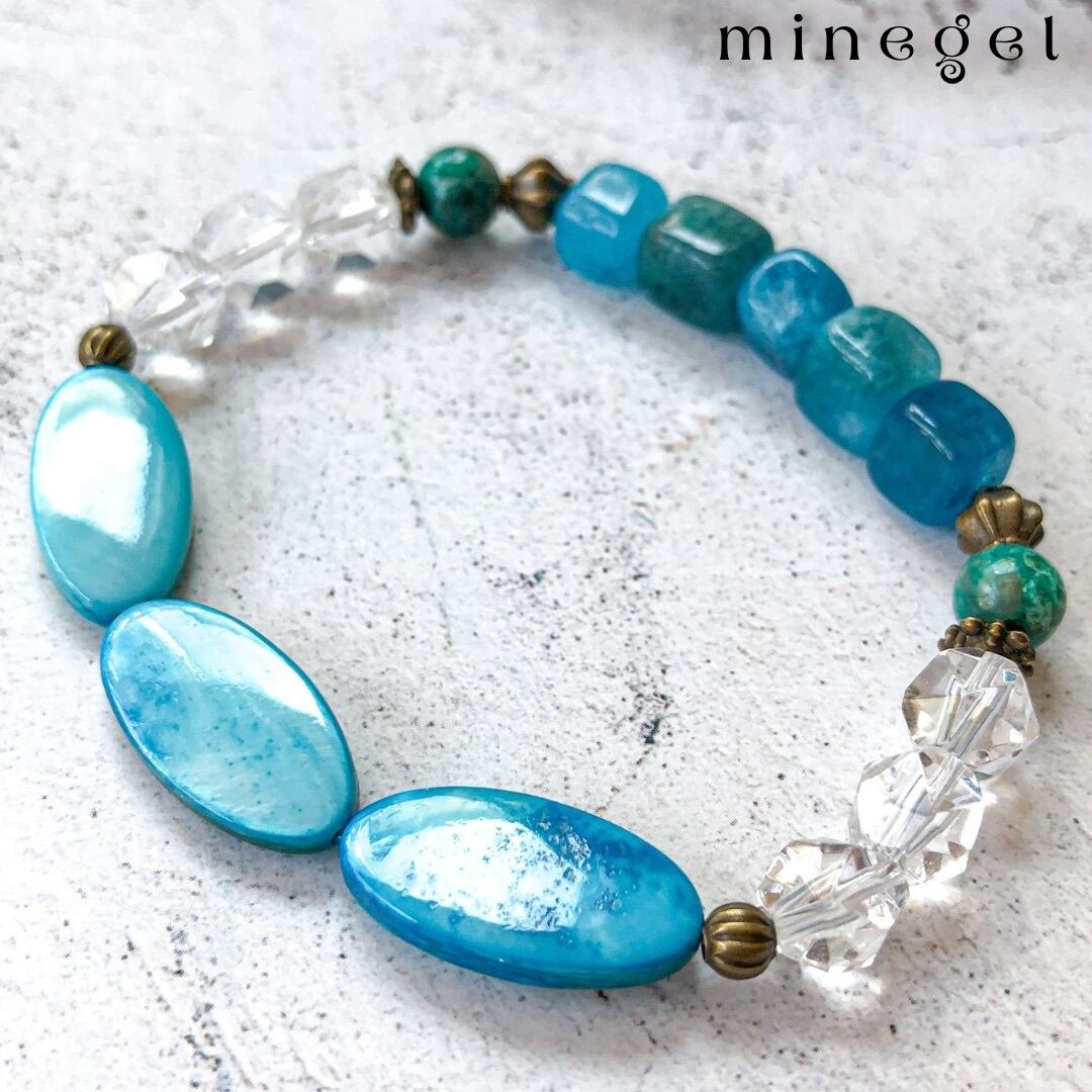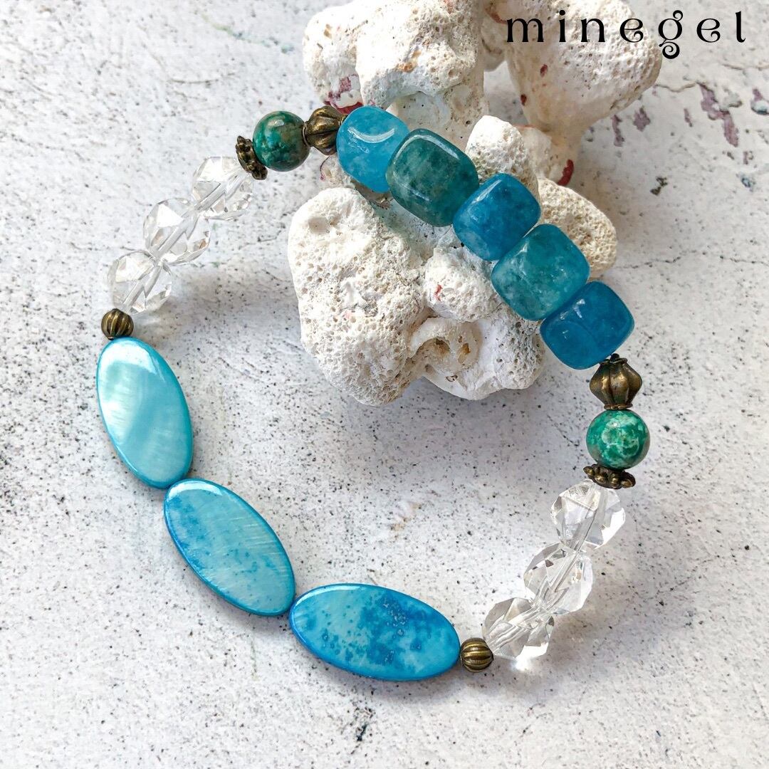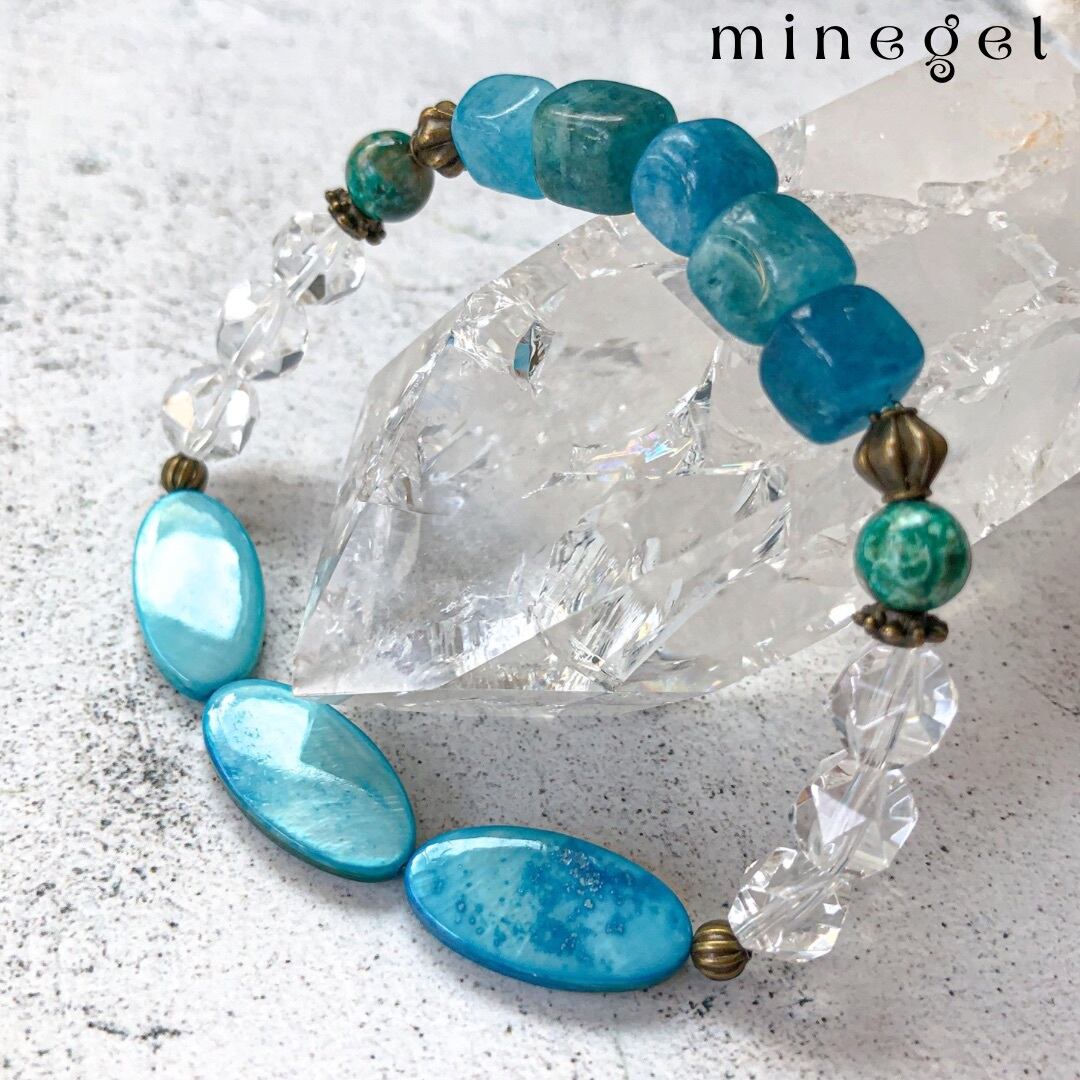 【受注制作】⭐️ブルーシェルとアパタイト⭐️希少シリカ入りクリソコラ&キラキラ水晶のブルーブレスレット✨ |minegel-オーダーメイドできるおしゃれパワーストーンブレスレット
