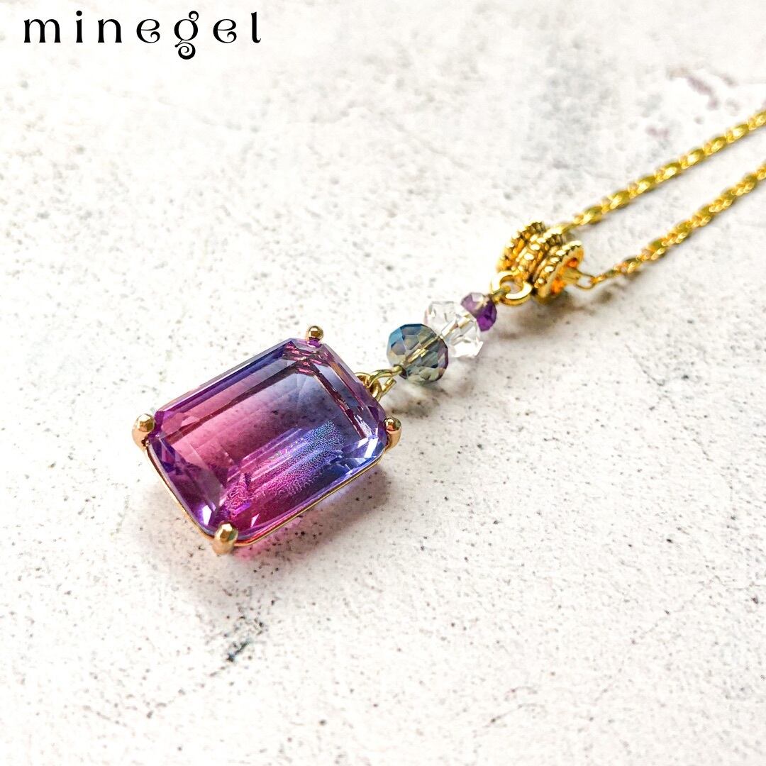 再販【受注制作】⭐️大粒⭐️宝石のような美しさ Pink&Purple バイカラー オーロラガラス ペンダント ✨|minegel-オーダーメイドできるおしゃれパワーストーンブレスレット