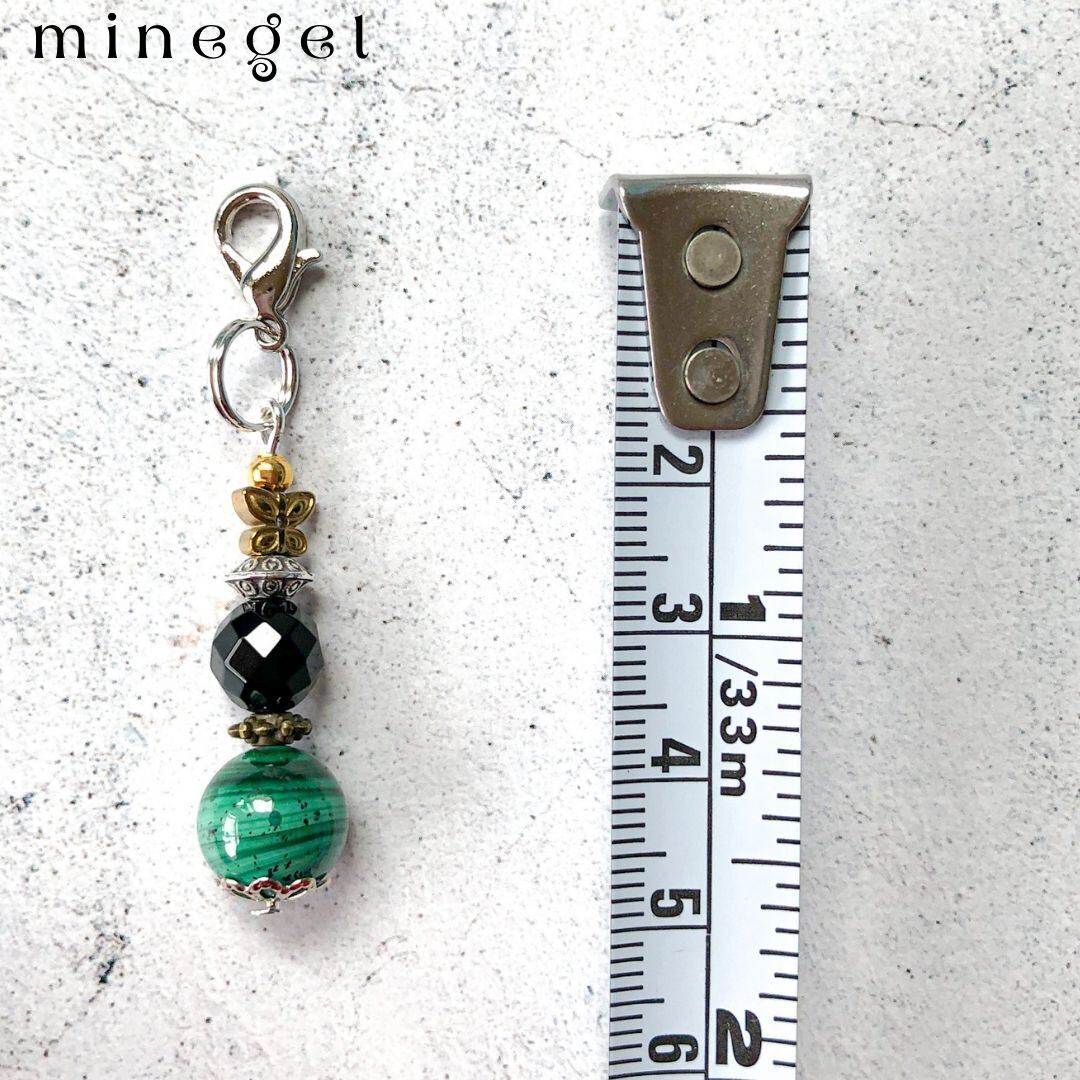 10mmの高発色のマラカイトと多面カットオニキスに蝶のヘマタイトをつなげたチャームです✨